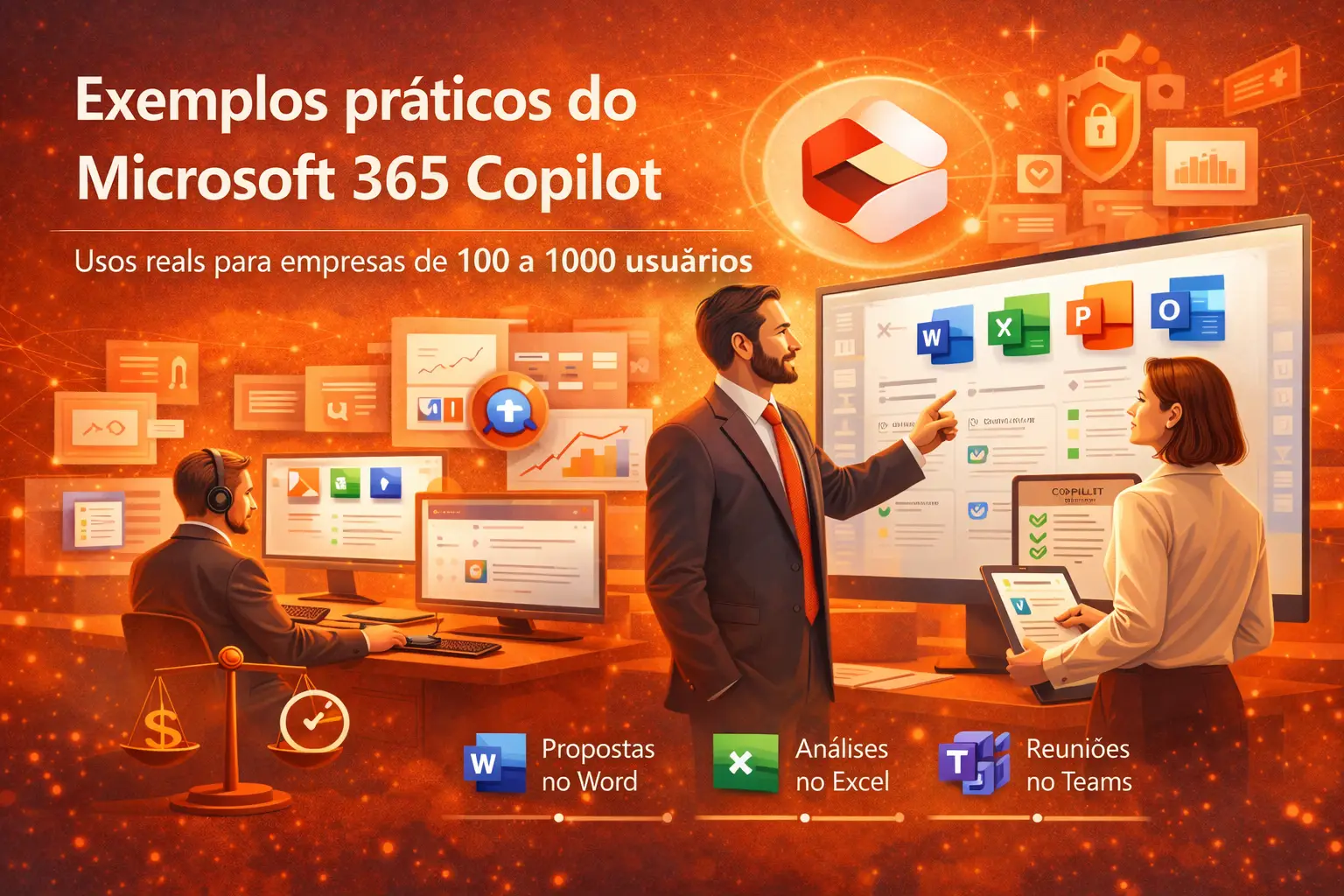 Os exemplos práticos do Microsoft 365 Copilot mostram como gerar propostas no Word, analisar dados no Excel, resumir reuniões no Teams e acelerar e-mails no Outlook usando dados corporativos com segurança. Quando aplicado com método, o Copilot reduz retrabalho, aumenta produtividade e melhora decisões executivas.